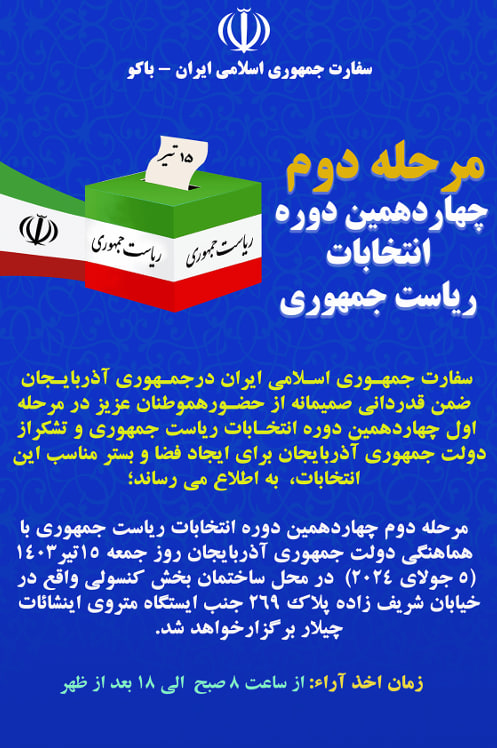 İran İslam Respublikasının Azərbaycan Respublikasındakı səfirliyinin mətbuat xidməti məlumat yayır: